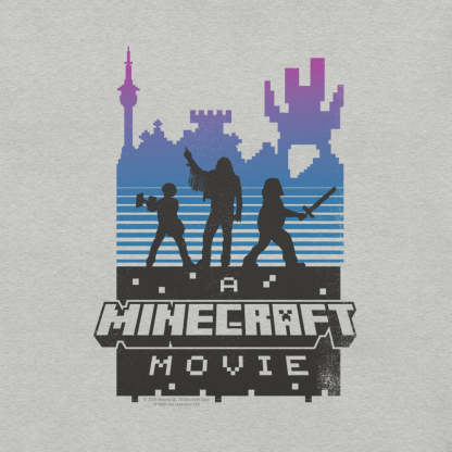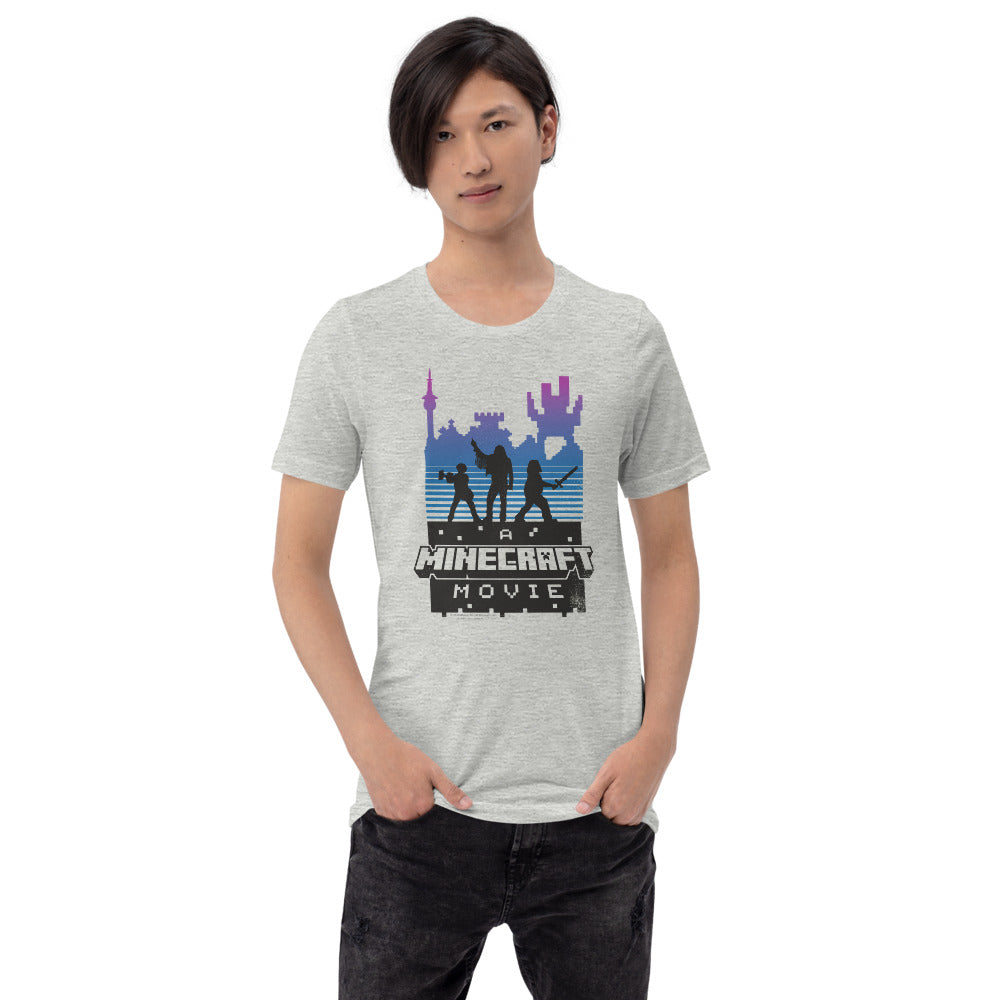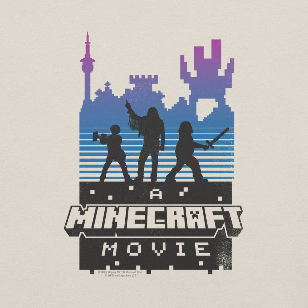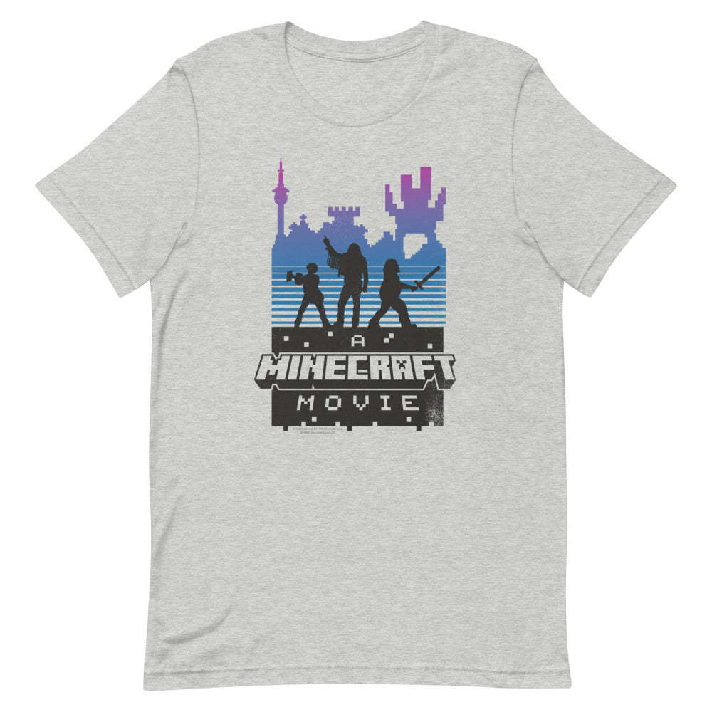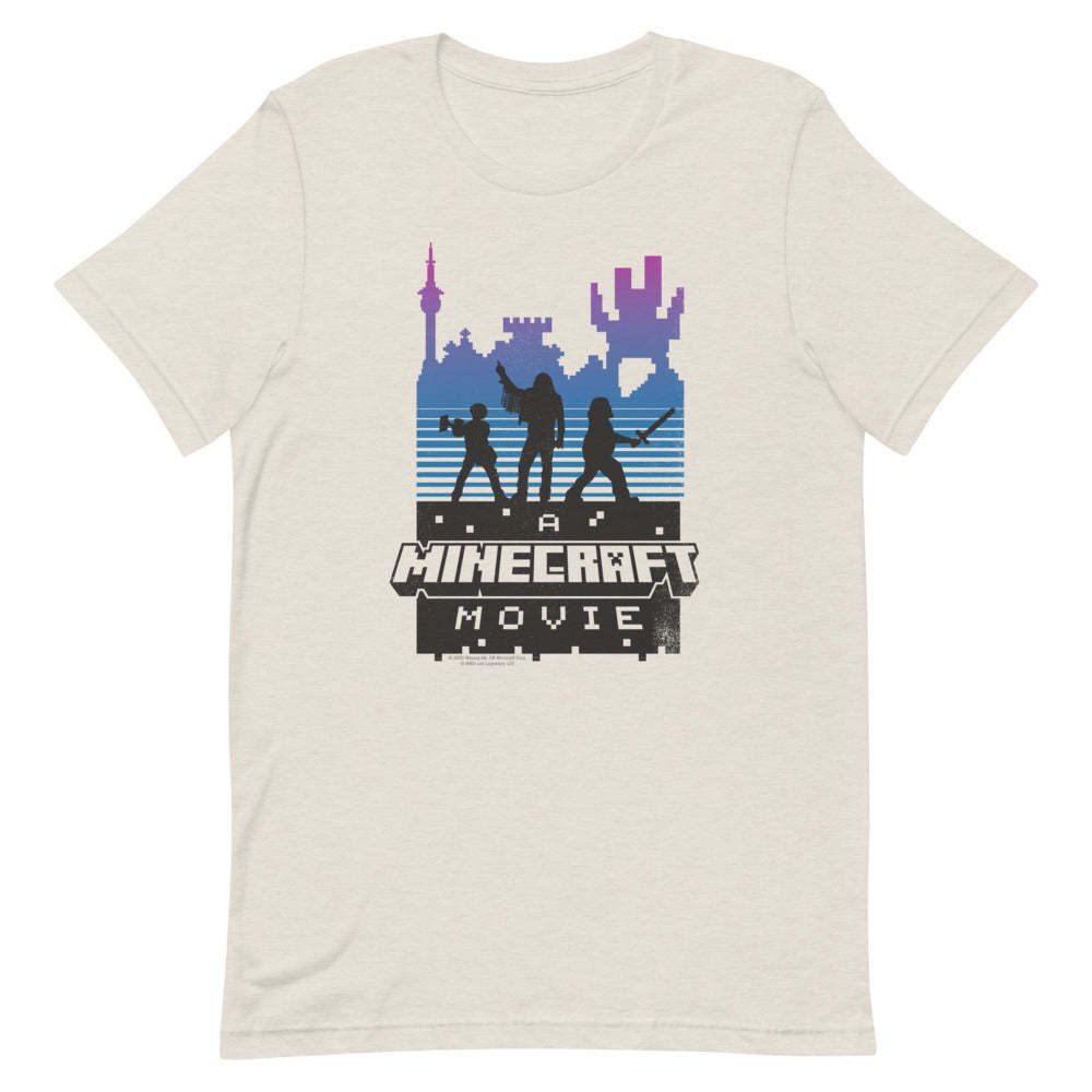 Level up your wardrobe with A Minecraft Movie Retro Silhouette Adult T-Shirt! Inspired by the highly anticipated A?Minecraft Movie, this tee features a bold retro-style silhouette design that brings the world of blocks and adventures to life.