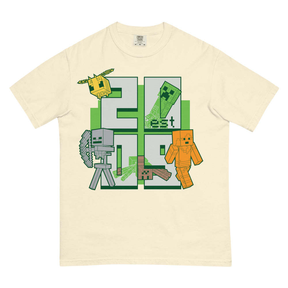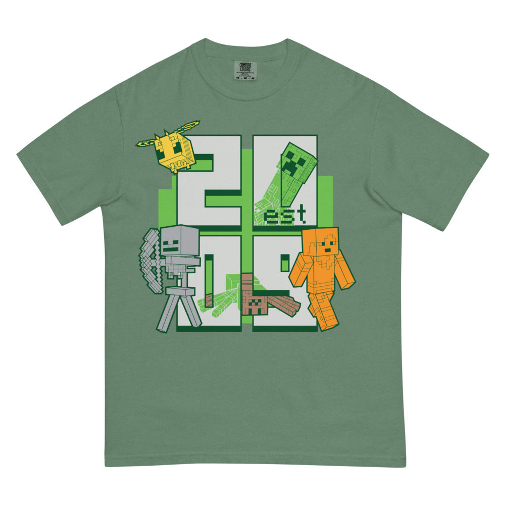 Celebrate the year it all began with the Minecraft Est. 2009 Stacked Unisex Comfort Colors T-Shirt. Featuring a bold stacked design that highlights?Minecraft's 2009 debut, this tee is a must-have for fans who want to honor the game's legacy in style. Made with premium Comfort Colors fabric, this shirt offers a relaxed fit, soft-washed feel, and durable construction perfect for everyday wear.