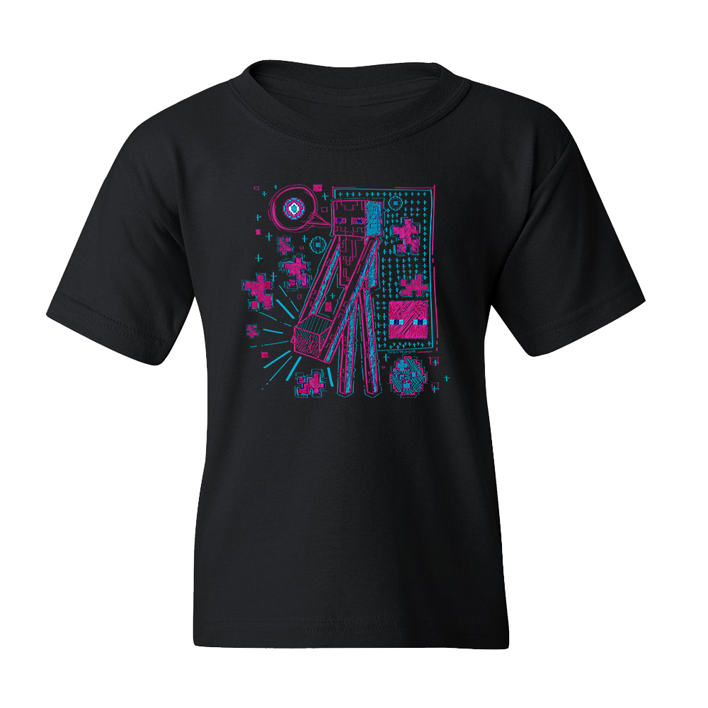 Enderman fans will love wearing this Minecraft Acid Sketch Enderman Kids Short Sleeve T-Shirt each chance that they get. Featuring an acid sketch of Enderman, this Minecraft kids t-shirt is a unique addition to any gamer��s style.