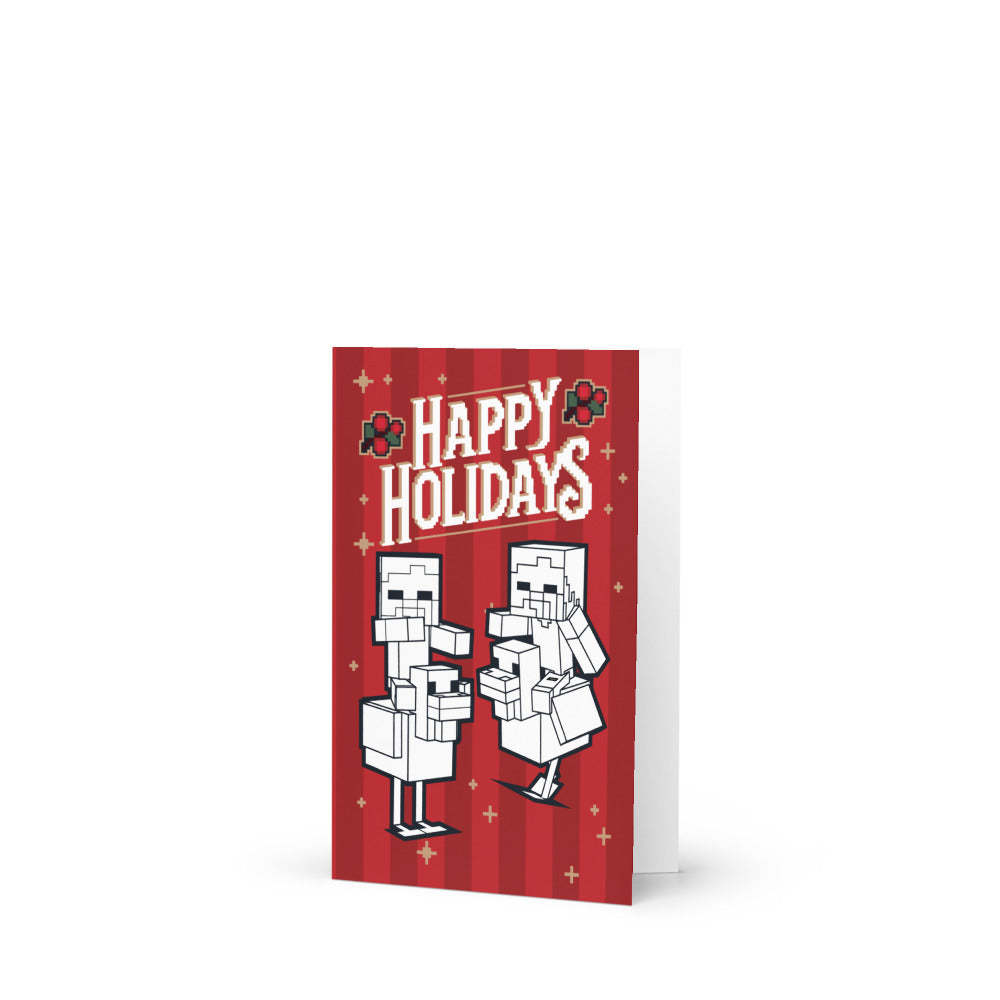 Send holiday cheer the Minecraft way with the Minecraft Color Me Chicken Jockey Holiday Greeting Card. Featuring a fun black-and-white outline of the iconic Chicken Jockey, this card doubles as both a festive greeting and a creative coloring activity. Perfect for Minecraft fans of all ages, this customizable card lets you add your own personal touch before sending it to friends, family, or fellow gamers. Whether you color it in yourself or leave it as a surprise activity for the recipient, this greeting card is a unique way to celebrate the season.