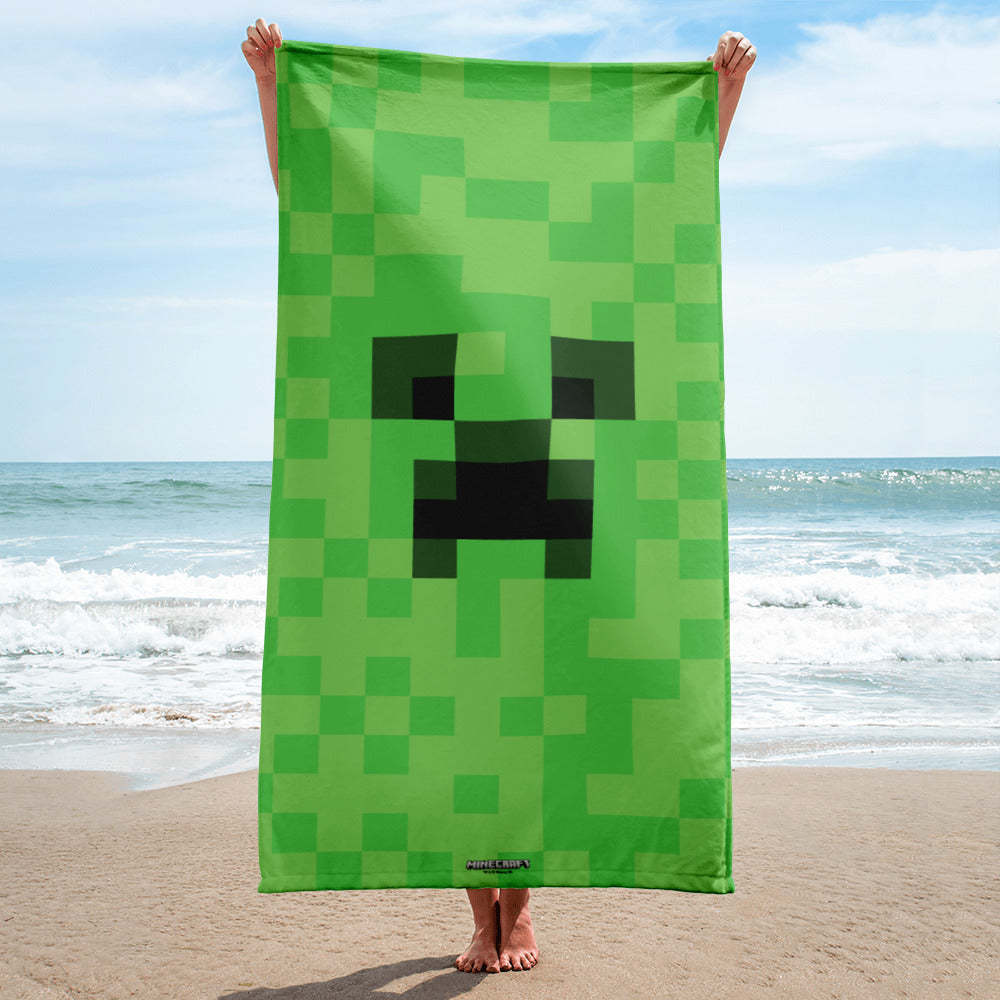 Minecraft Creeper Big Face Beach Towel