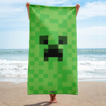 Bring pixel-perfect fun to your beach days with the Minecraft Creeper Big Face Beach Towel! Featuring the iconic green Creeper design from the beloved video game, this towel is a must-have for Minecraft fans who want to show off their gamer style all summer long.