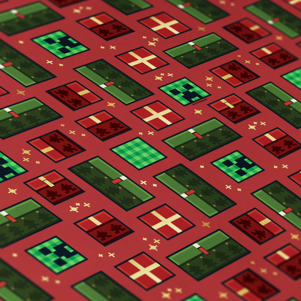 Wrap your holiday gifts with the charm of the Minecraft world using our Minecraft Holiday Boxes Pattern Gift Wrap! Featuring festive pixel-art gift boxes inspired by the iconic Minecraft style, this wrapping paper adds a blocky burst of holiday cheer to every present.