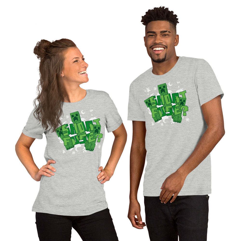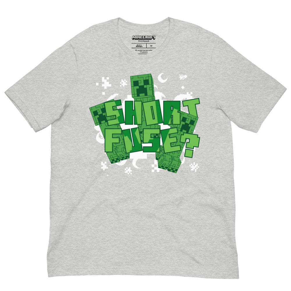 Bring explosive style to your wardrobe with the Minecraft Short Fuse Adult T-Shirt. Featuring a bold Creeper-inspired design, this tee is perfect for gamers who love the thrill of survival mode. Made with soft, breathable cotton, it offers all-day comfort whether you're exploring biomes, battling mobs, or relaxing IRL.