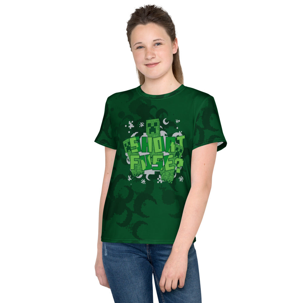 Bring explosive style to your kid's wardrobe with the Minecraft Short Fuse Youth T-Shirt. Perfect for young fans of the game, this bold graphic tee features a dynamic Creeper design that shows off their love for adventure and creativity. Made with soft, breathable fabric, this t-shirt ensures all-day comfort whether they're gaming, at school, or out with friends.