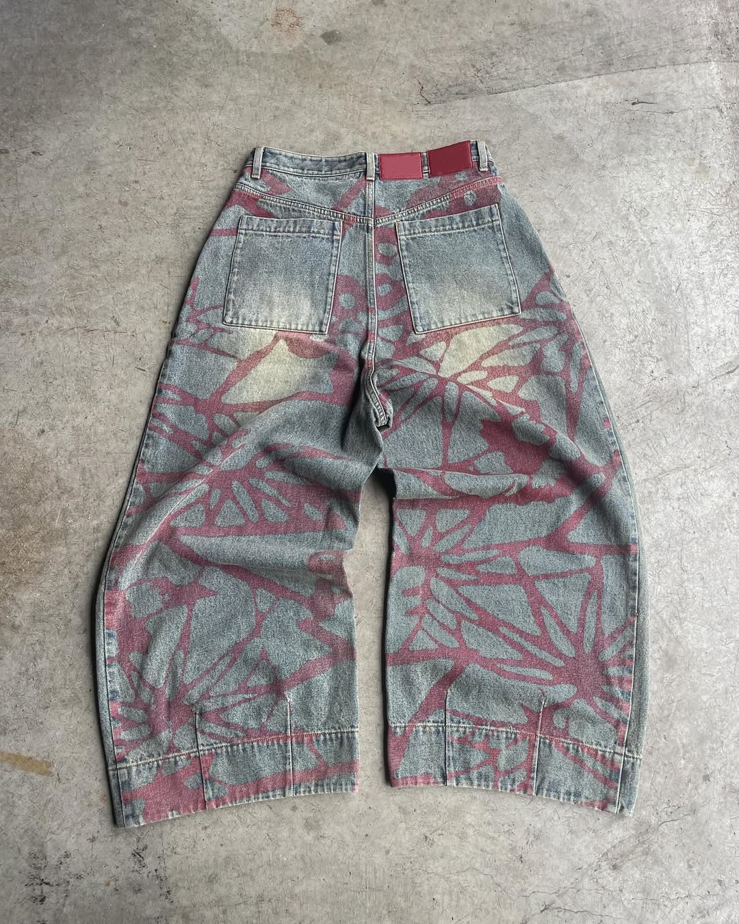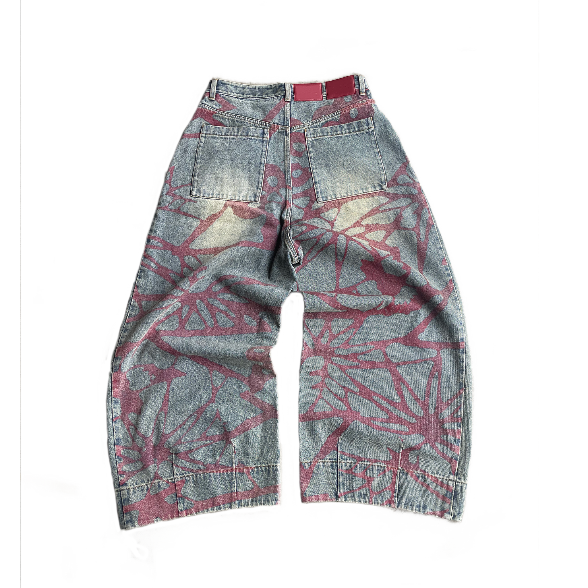 100% cotton washed denim, red butterfly print overlay